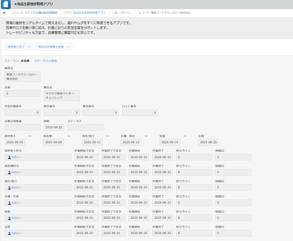 現場の進捗をリアルタイムで見える化し、遅れやムダをすぐに発見できるアプリです。